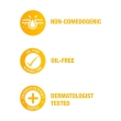 Oil-free; Dermatologist tested, Non-comedogenic